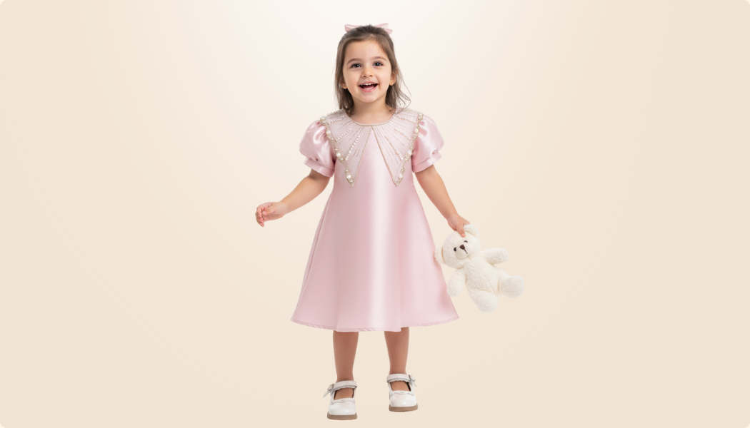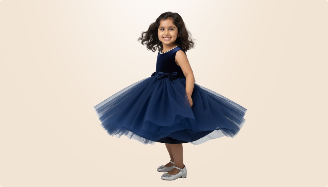 فستان منفوخ مطرز باللون الأزرق / الأحمر
